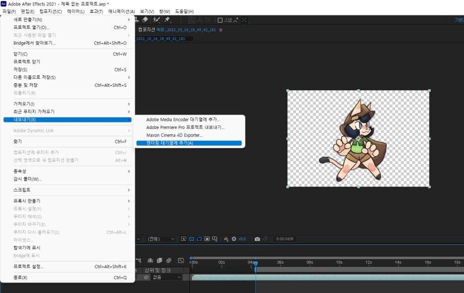 동영상을 Adobe After Effect 툴에서 불러온뒤