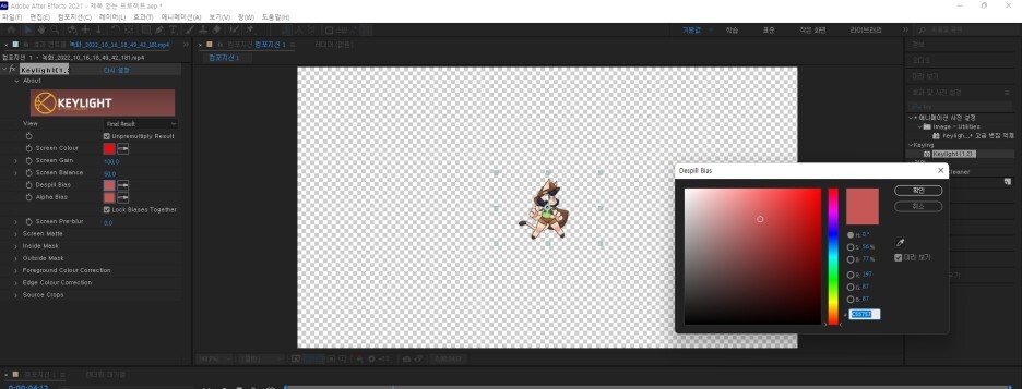 Despill Blas 뭔지몰라도 여튼 여기서 팔레트에서 색을 조정하다보면 피부색이 다시 핏기(?)가 돌기 시작한다