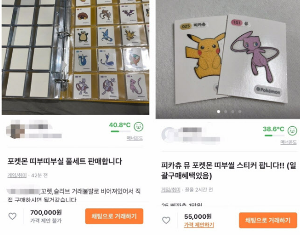 포켓몬 띠부씰이 한창 많이들 인기 있을때를 가졍하면