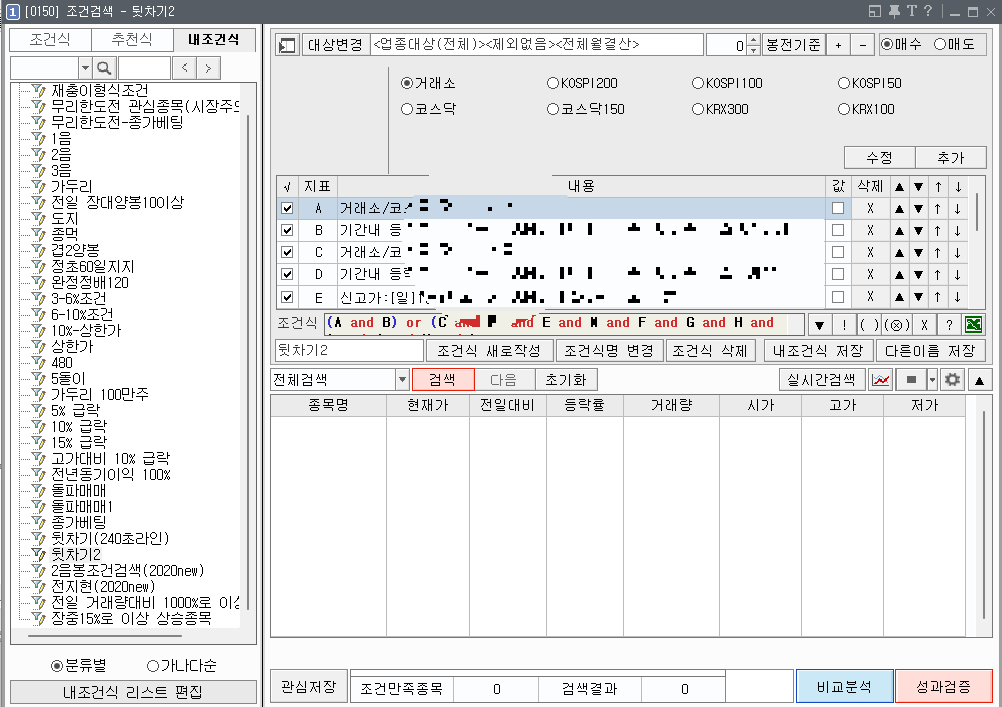 관심종목 찾기 위한 조건검색식 등록 [0150 조건검색]