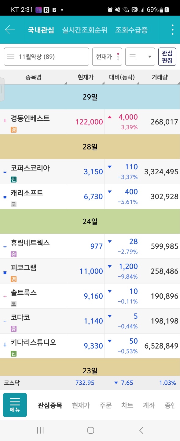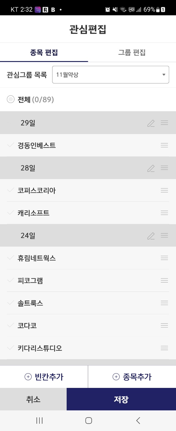 관심종목에 담은 상태에서