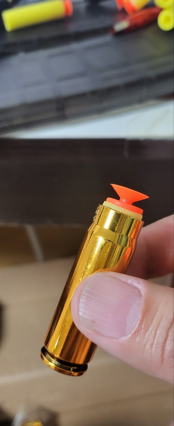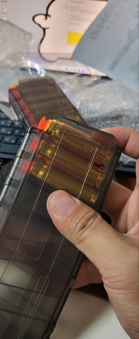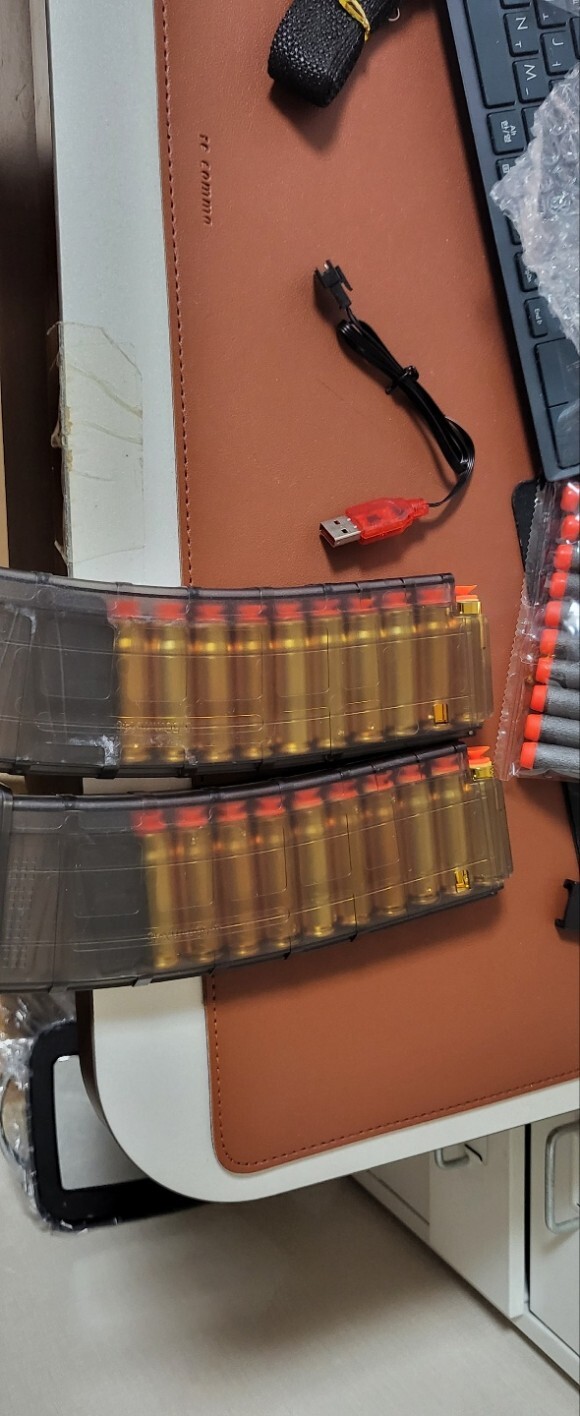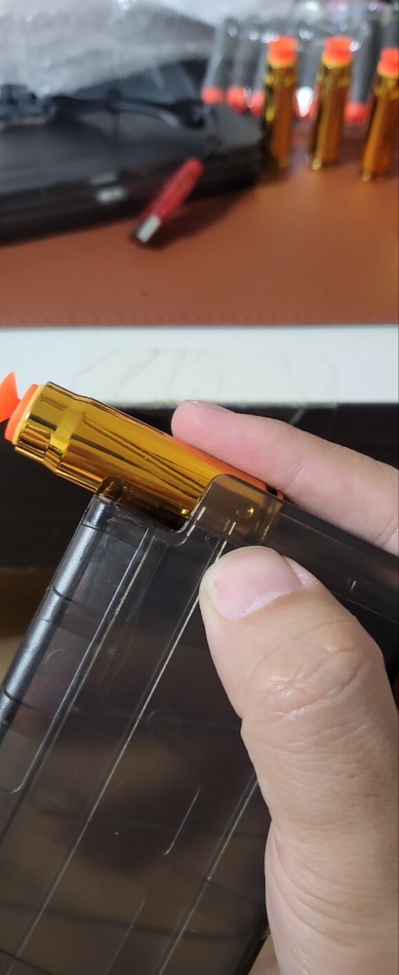 이런식으로 탄환을 넣으면 된다 탄창은 탄창식 너프건의 탄창과 거의 똑같이 구현되어 있다. 한탄창에 최되 11발까지 장전이된다 10발씩 장전하는것이 권장