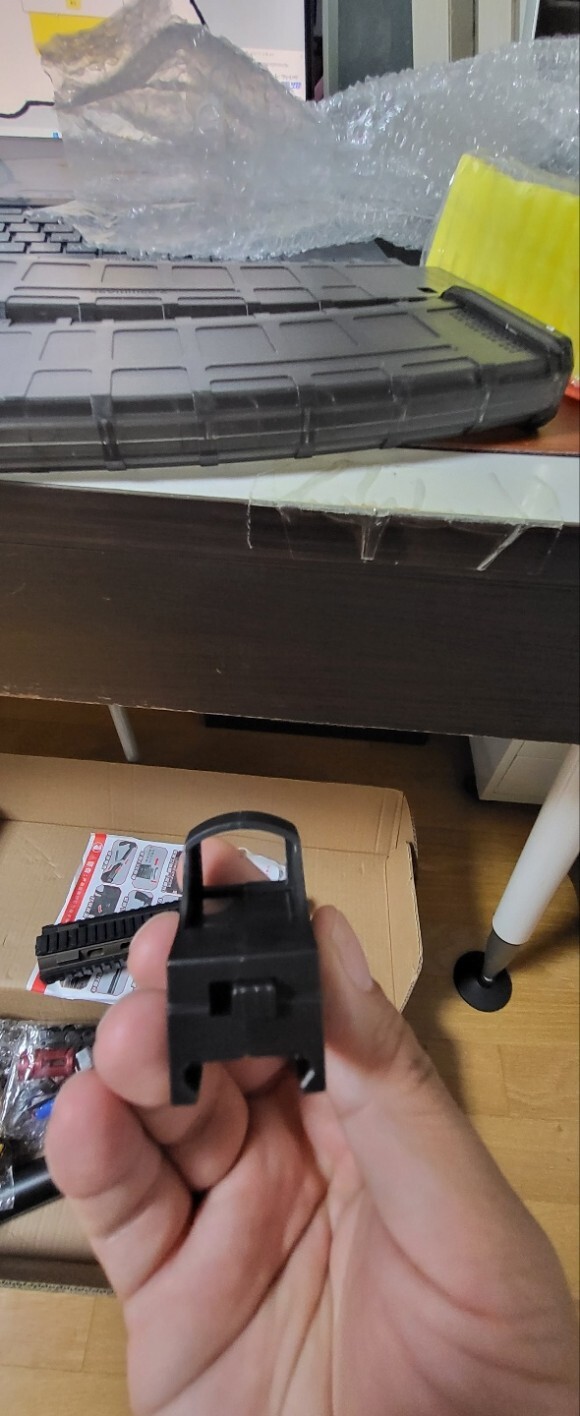 집에서 할경우 바닥에 탄피가 나딍굴 수 있고 밖에서는 탄피주으러다니기 귀찮을 수있어서 탄피주머니 도 구입했다. 탄피주머니를 설치하니 문제가..탄피가 튕겨나가다...잼이 걸리는경도 발생하더라....