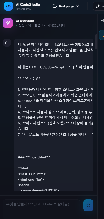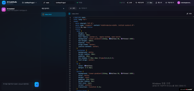내가 만든 바이브코딩툴 AI CodeStudio (이름도 짓기 귀찮아서 지보고 알아서 지으라고 했더니....)