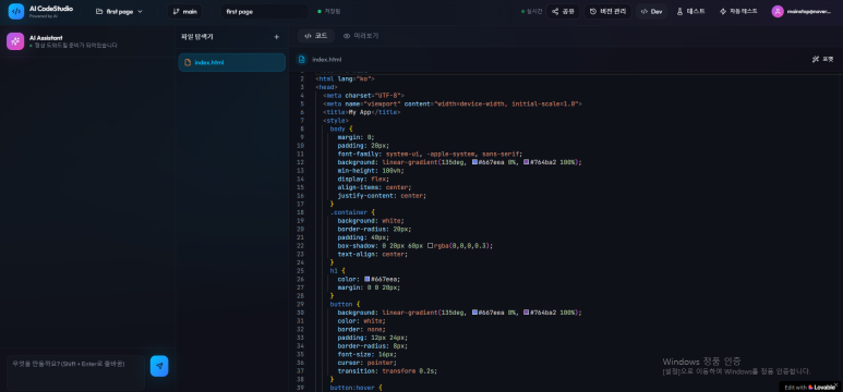 AI와 함께하는 직관적인 코딩 경험. 실시간 코드 편집과 AI 어시스턴트로 빠르게 프로토타입을 만드세요.