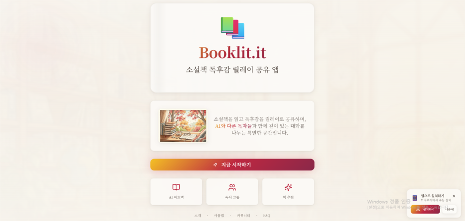 직접 https://booklitit.com 으로 접속해도 됩니다.