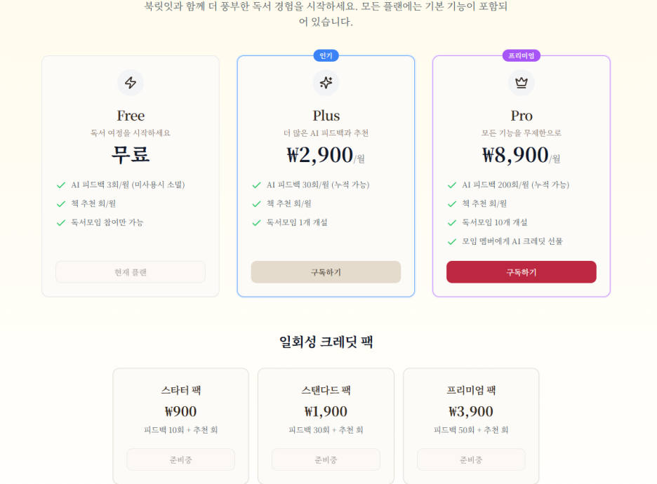 만 만들수 있는데. 구독플랜으로 한번해보려합니다. 구독 플랜을 통해서 구독자는 유료독서가입모임도 만들수 있도록할려고 해요. 요즘 독서모임을 운영하는 분들이 많은데 그런 분들이 유료가입형태로 진행할 수 있도록
