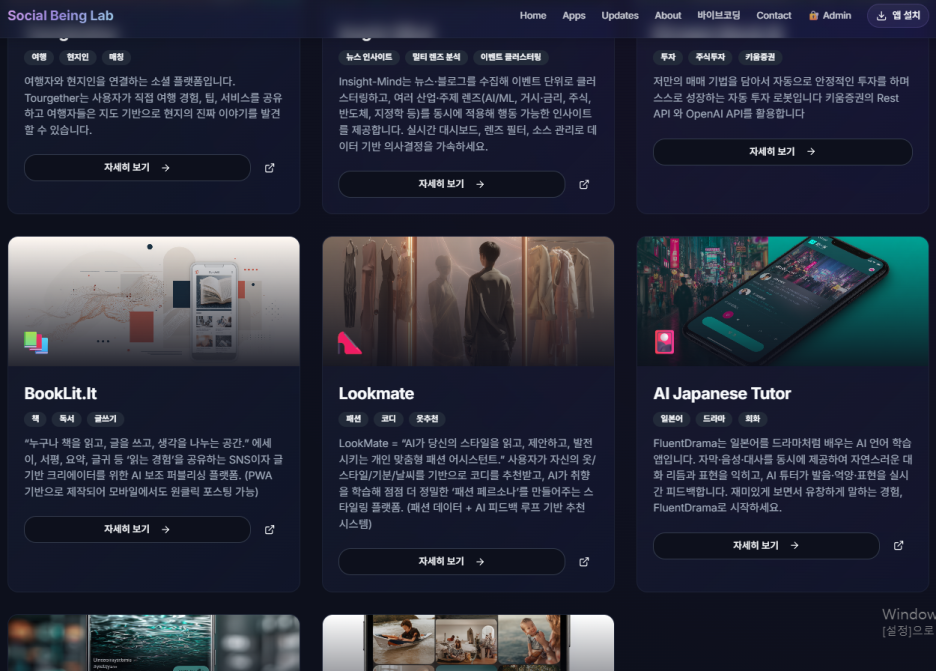 저는 Vibe-coding 소개 페이지인 https://sotialbeing.com 에도 이미 올라가 있습니다.