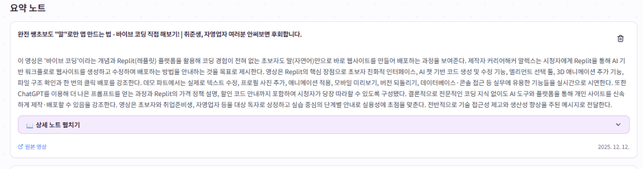 유튜브 영상을 자동으로 요약하고, 노트처럼 정리해주는 서비스입니다.