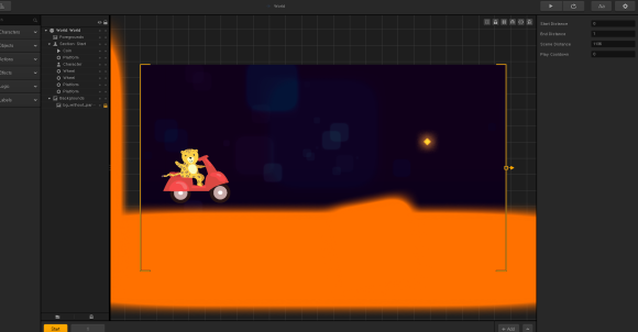 이렇게 게임 제작툴에 모터크로스의 기본 템플릿으로 구성된 화면이 뜬다
