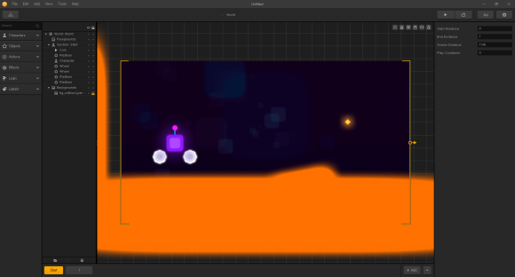이렇게 게임 제작툴에 모터크로스의 기본 템플릿으로 구성된 화면이 뜬다