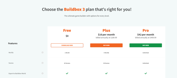 무료와 유료에의 차이는 게임을 제작할 수 있는 갯수의 제한 인앱구매 등등의 기능 Ad 즉 광고배너의 설치가능 유무등이다...그외 게임 제작기능에 대한 제한은 없으니 무료로 우선 빌드박스 툴을 다운받아 연습을 한 후 유료버전으로 도전해볼 수 있다.